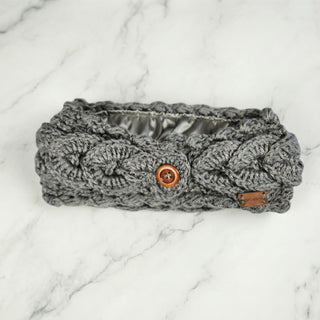 Faux Fur Satin Lined Winter Headband in Black & Gray