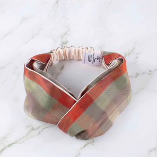 Plaid Silk Turban Headband in Rust, Sage, & Green